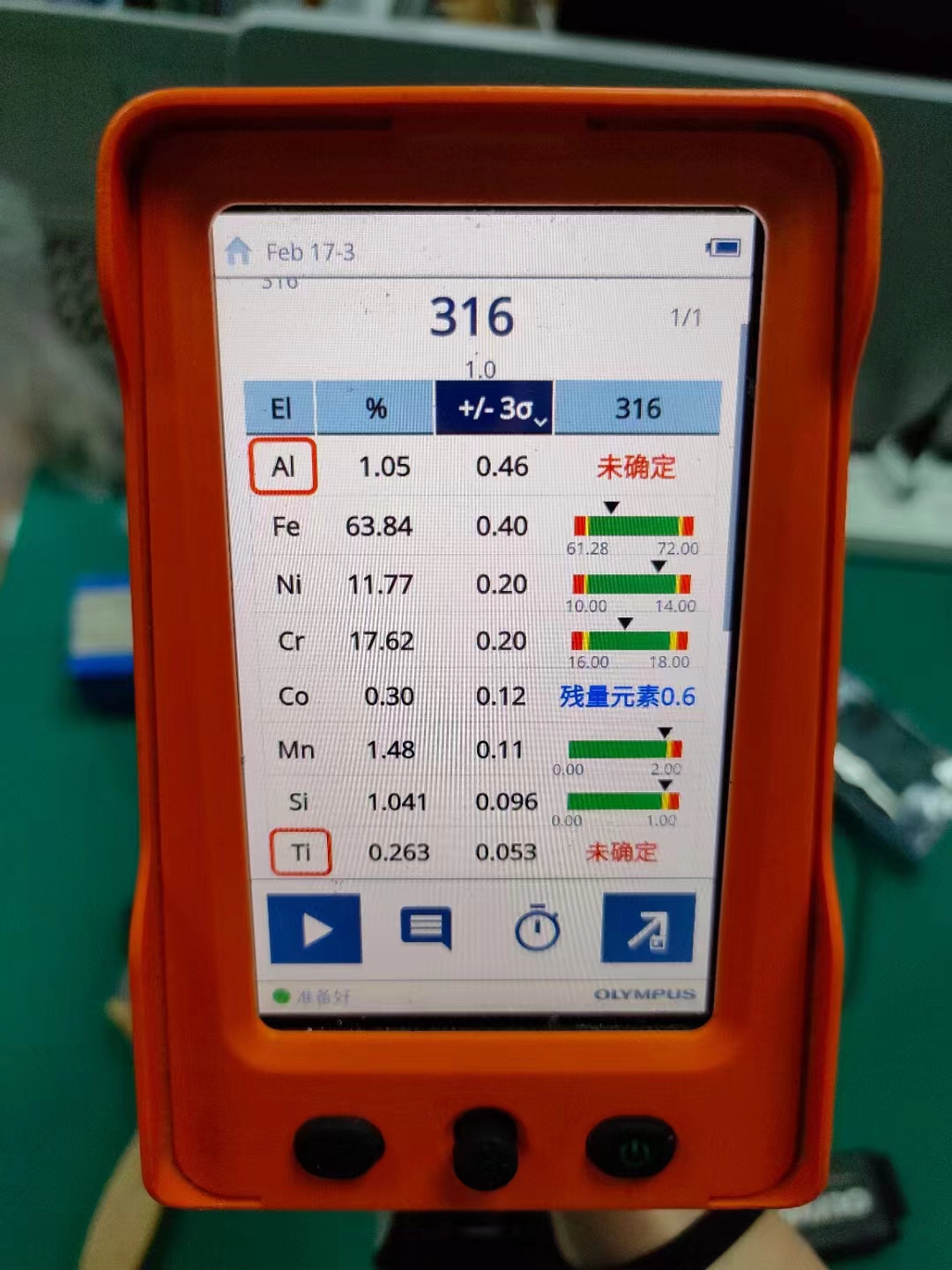 手持式光譜儀的用戶界面類似智能手機(jī)的界面,使用非常簡便,初學(xué)的操作人員只需很少的培訓(xùn),即可自如操作。用戶可以在分析儀屏幕上直觀地看到檢測結(jié)果,包括牌號識別信息、規(guī)格比較信息及元素的組成成分信息等。