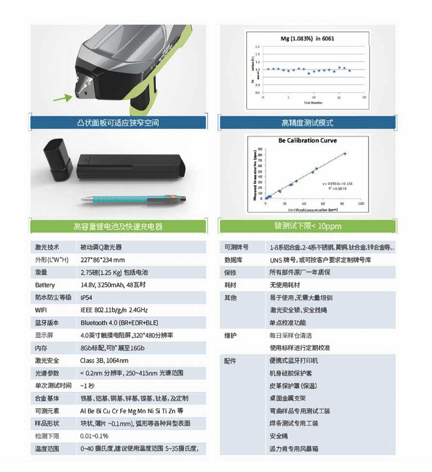6、便攜式分析儀:便攜式LIBS分析儀適用于金屬及其牌號的識別、巖石種類鑒別等多種應用領域,具有高激光功率,適用于更廣泛的分析樣品。