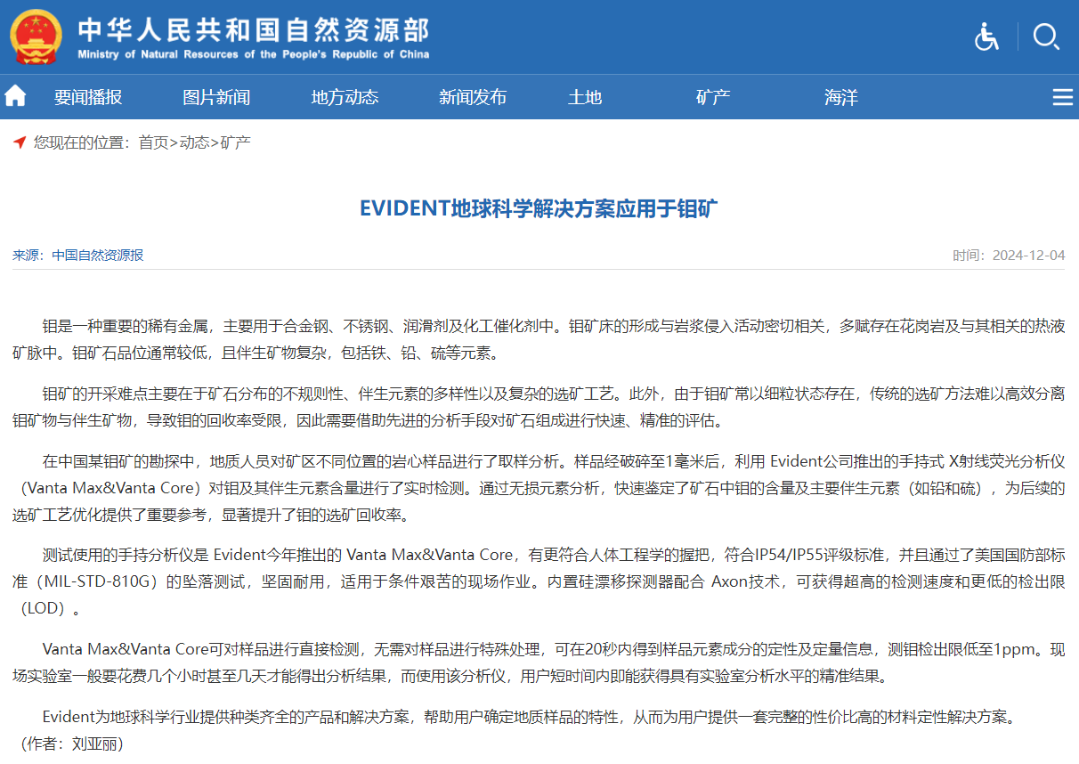 自然資源部都在推薦的EVIDENT鉬礦檢測儀