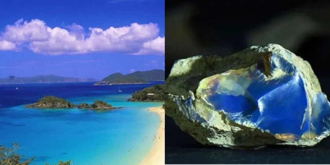 加勒比海地區是藍色琥珀的故鄉,著名的多米尼加藍珀便是出產自這里,多米尼加位于北回歸線以南,屬于熱帶雨林氣候,植被茂盛物種繁多,主要礦區僅有兩個,多米尼加琥珀大多掩埋于火山灰中,地殼變遷后其他礦物質融入琥珀,出現藍色或綠色的熒光反應,其出產量僅為世界琥珀產量的1%,天空藍色更是極為稀少,墨西哥琥珀形成年代等同多米尼加,且品類相同,顏色多為黃綠色或淡褐色,熒光反應多為藍綠色,天空藍數量鳳毛麟角,因此,市場上藍珀的價格多米尼加始終遙遙領先于墨西哥。