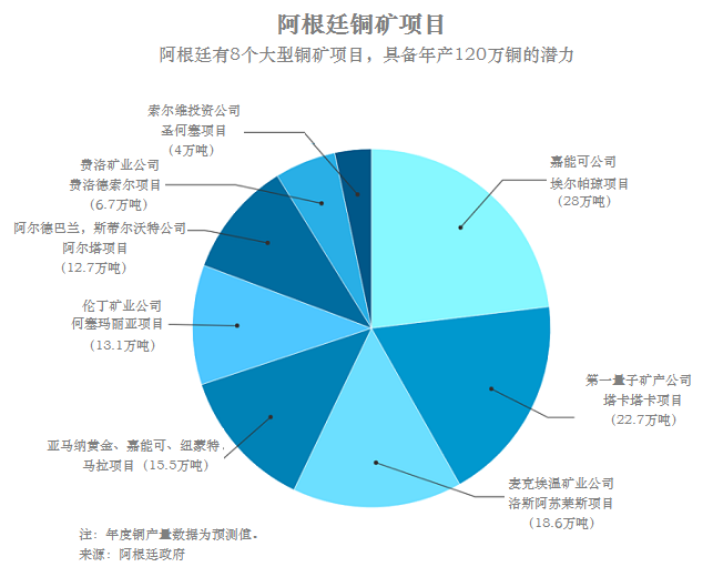 阿根廷政府預測,這個南美國家擁有的銅礦項目可支撐其在2030年產銅79.3萬噸,雖然低于最大產銅國智利,但是接近澳大利亞和贊比亞的產量。