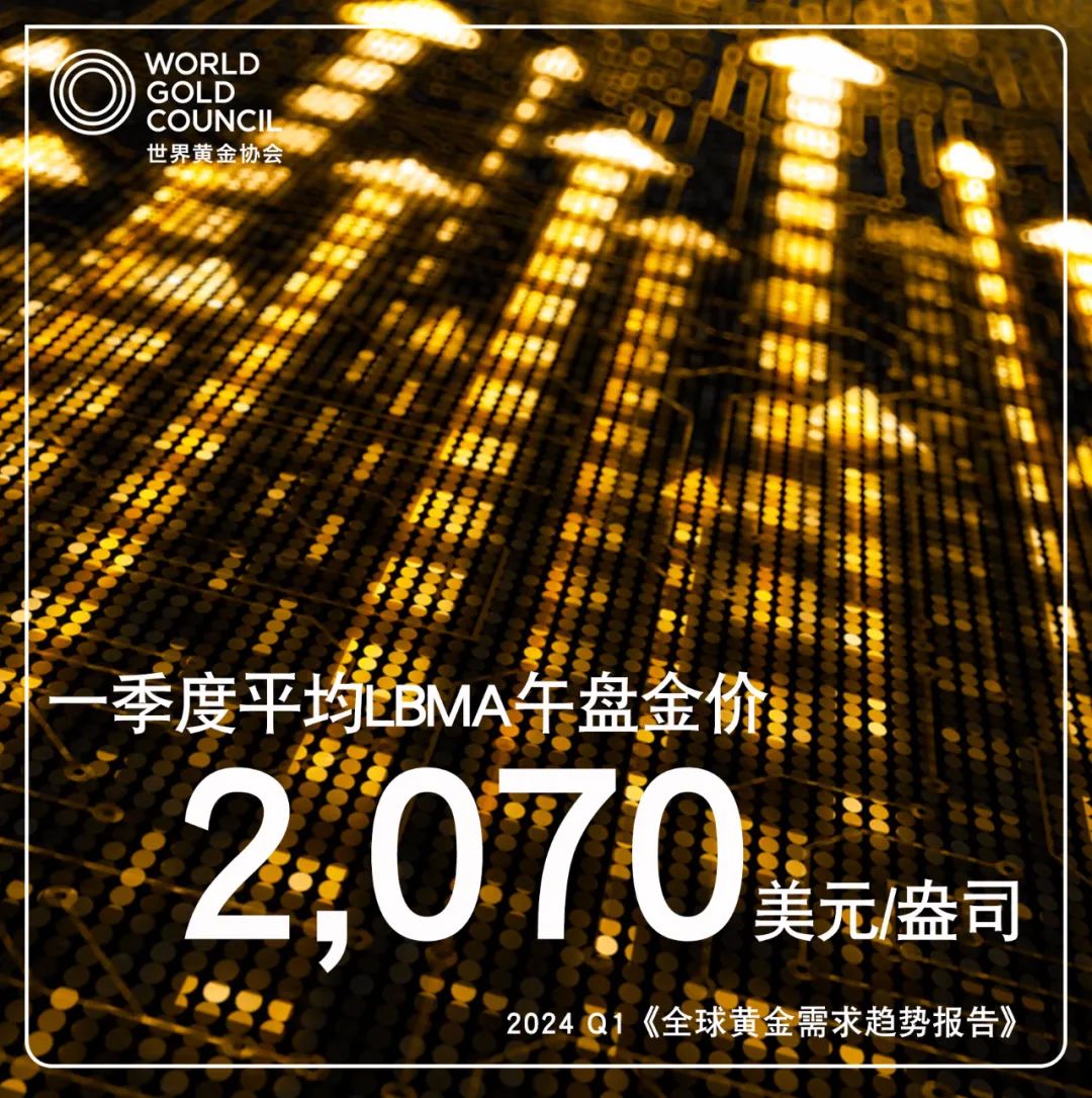 4月30日,世界黃金協會發布2024年一季度《全球黃金需求趨勢報告》顯示,一季度全球黃金需求總量(包含場外交易)同比增長3%至1238噸。世界黃金協會中國區CEO王立新表示,這成為2016年以來最亮眼的一季度戰績。而不含場外交易的一季度全球黃金總需求為1102噸,較2023年同期下降5%。