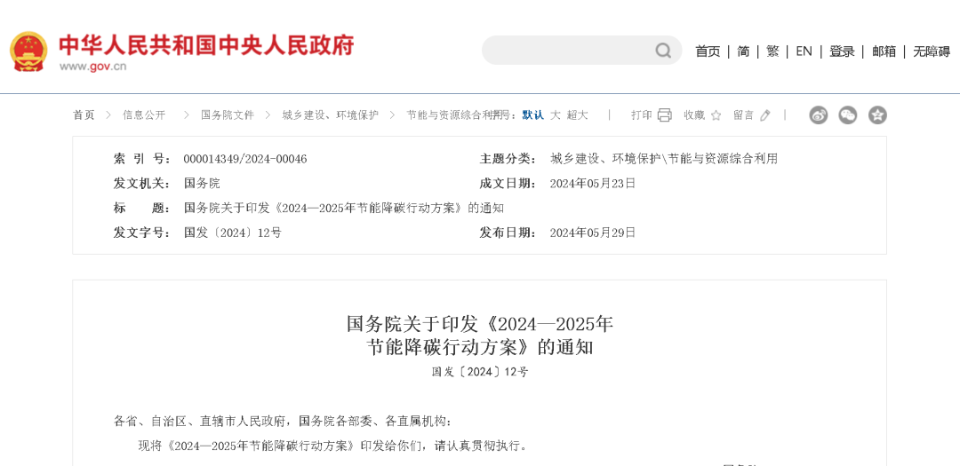 為貫徹落實(shí)黨中央、國務(wù)院決策部署,錨定“十四五”節(jié)能降碳目標(biāo)任務(wù),加大節(jié)能降碳攻堅(jiān)力度,分領(lǐng)域分行業(yè)實(shí)施節(jié)能降碳專項(xiàng)行動(dòng),更好發(fā)揮節(jié)能降碳的經(jīng)濟(jì)效益、社會(huì)效益和生態(tài)效益,為實(shí)現(xiàn)碳達(dá)峰碳中和目標(biāo)奠定基礎(chǔ),國家發(fā)展改革委會(huì)同有關(guān)方面研究起草了《2024—2025年節(jié)能降碳行動(dòng)方案》,經(jīng)國務(wù)院常務(wù)會(huì)議審議通過后,近日由國務(wù)院印發(fā)。