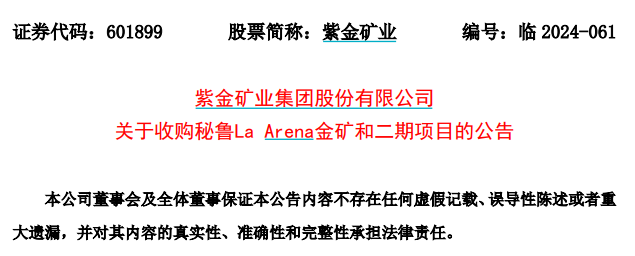 礦產銅、礦產金產量已經挺進全球前列的紫金礦業,持續發力培厚資源儲備。11月7日,紫金礦業發布公告,擬收購泛美白銀旗下秘魯La Arena銅金礦項目100%權益,其中核心的二期項目保有銅資源量278.5萬噸,金資源量196.5噸。