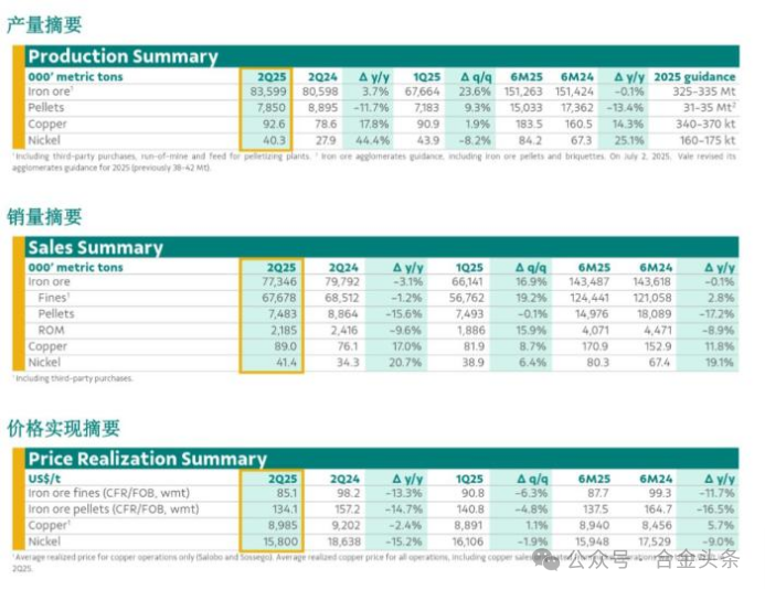 當(dāng)?shù)貢r間22日,總部位于巴西里約熱內(nèi)盧的礦業(yè)巨頭淡水河谷發(fā)布2025年第二季度產(chǎn)銷量報(bào)告稱,報(bào)告指出,鐵礦石業(yè)務(wù)方面,新資產(chǎn)逐步增產(chǎn),運(yùn)營可靠性不斷提升,這些將支持公司更順利地完成2025年生產(chǎn)計(jì)劃。